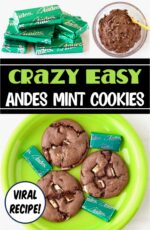Chock-full of minty dark chocolate Andes Mints, these 4-Ingredient Andes Mint Chocolate Cookies are your hot ticket to household fame! They’re soft and chewy, ridiculously easy to make… and so good you’ll even have to hide them from yourself!