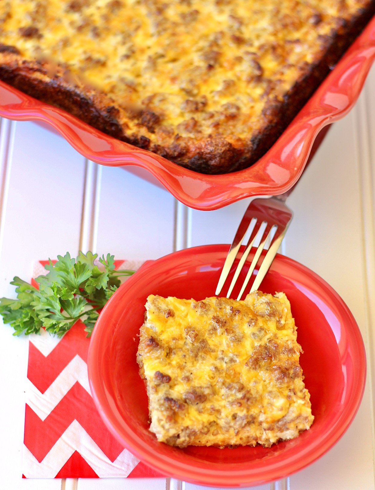 This easy Sausage Breakfast Casserole will have the whole family jumping out of bed in the morning! With plenty of eggs, piles of cheese, and seasoned to perfection, this savory overnight casserole is certain to plaster a bunch of silly grins on the whole gang! It’s so simple to make, when prepped the night before!