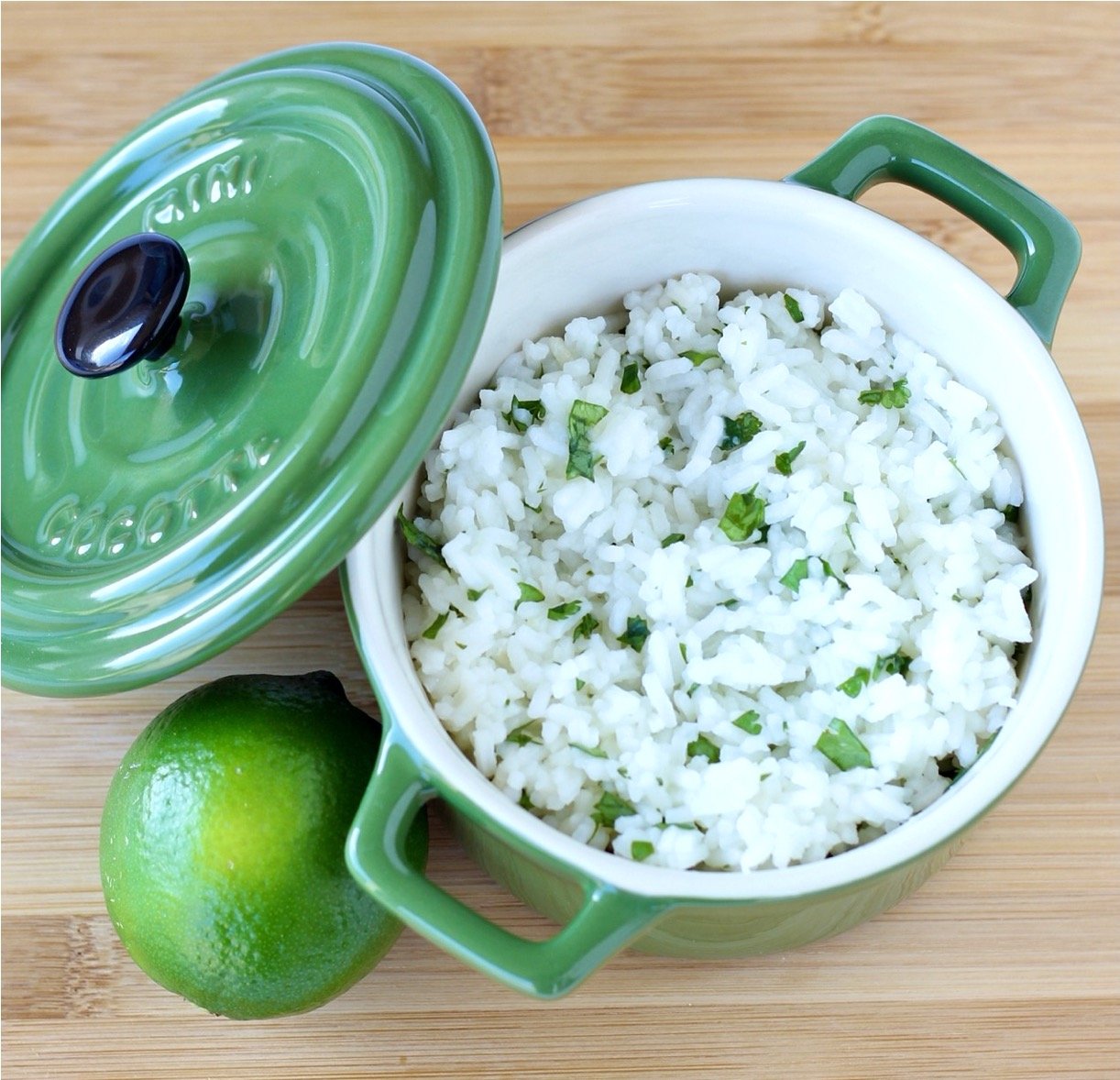 I often make lime rice but never thought of adding cilantro. The rice looks so fabulous and I especially loved how cute the green pot cosying up the dish. Thanks Heidi. I loved the images.