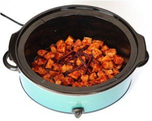 - Cook chicken and dried Thai Chilies in Crock Pot on HIGH for 3 hours or LOW for 6 hours (covered).
