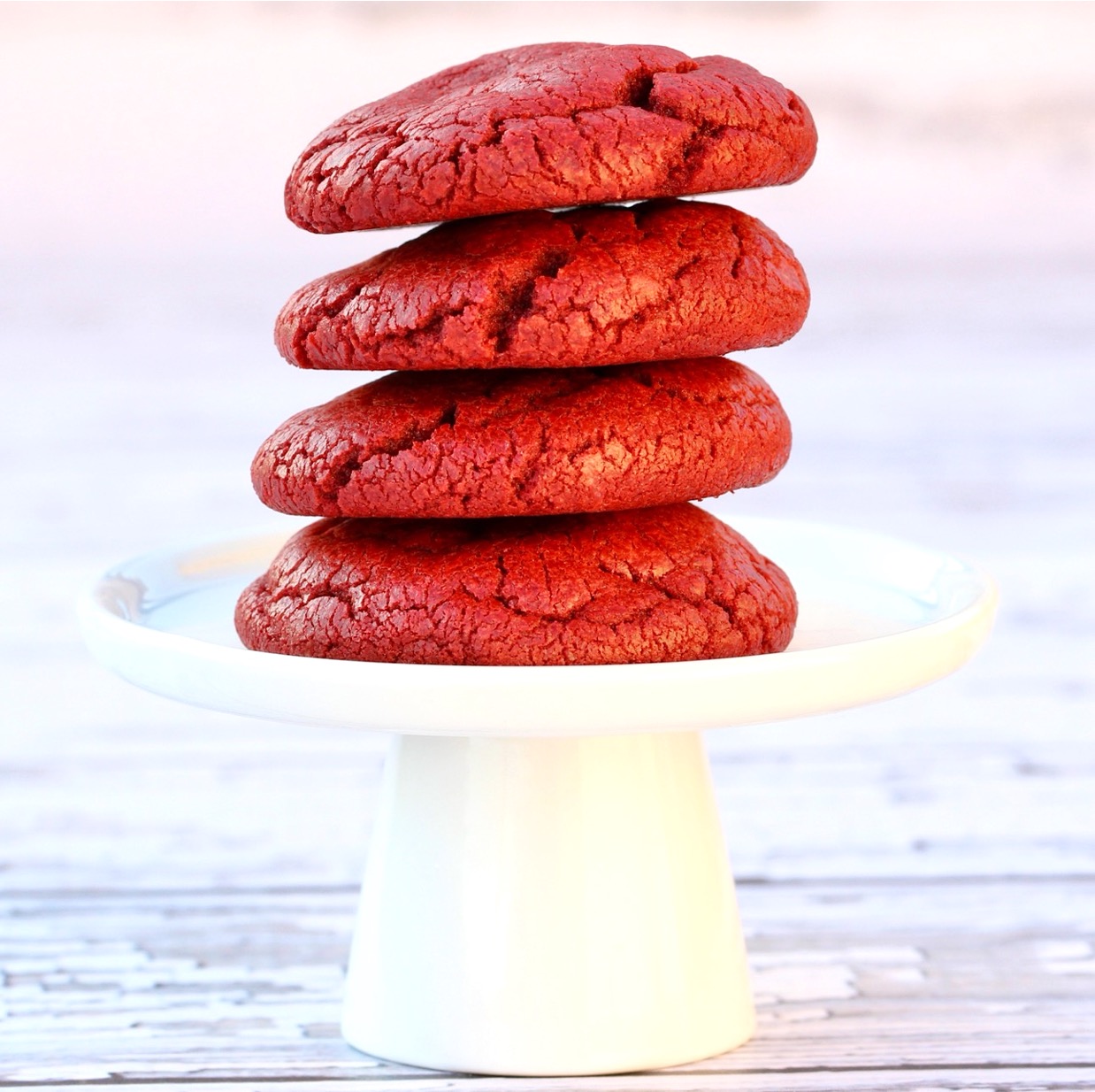 These delightfully soft and velvety cookies are the perfect solution for anytime you’re craving some red velvet decadence! They’re also the perfect red cookie to serve at your Christmas parties, for a romantic Valentine’s Day, and even for your 4th of July bash.