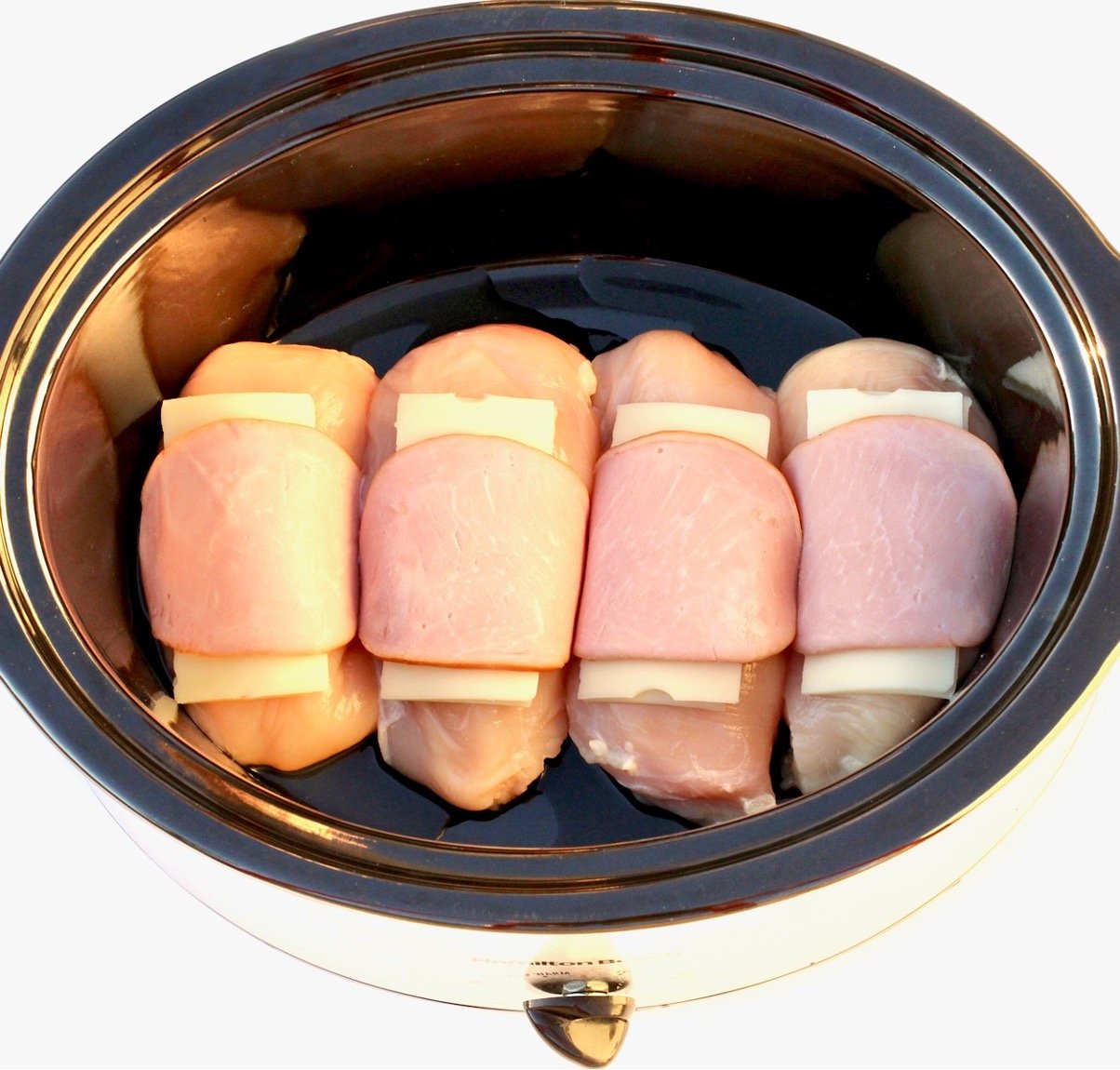 1. Place Chicken Breast in Crock Pot, then top with Cheese and Ham.
