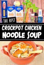 With this recipe, you’ll need just a few simple ingredients to make the BEST crockpot chicken noodle soup with rotisserie chicken!