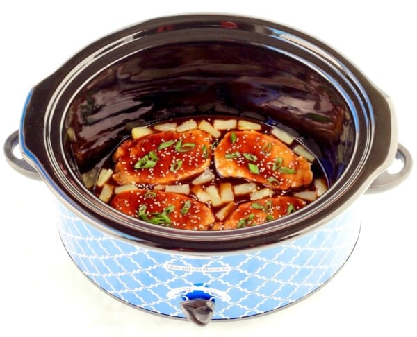 It’s actually SO simple to prepare these gloriously tasty Hawaiian pork chops in your slow cooker.