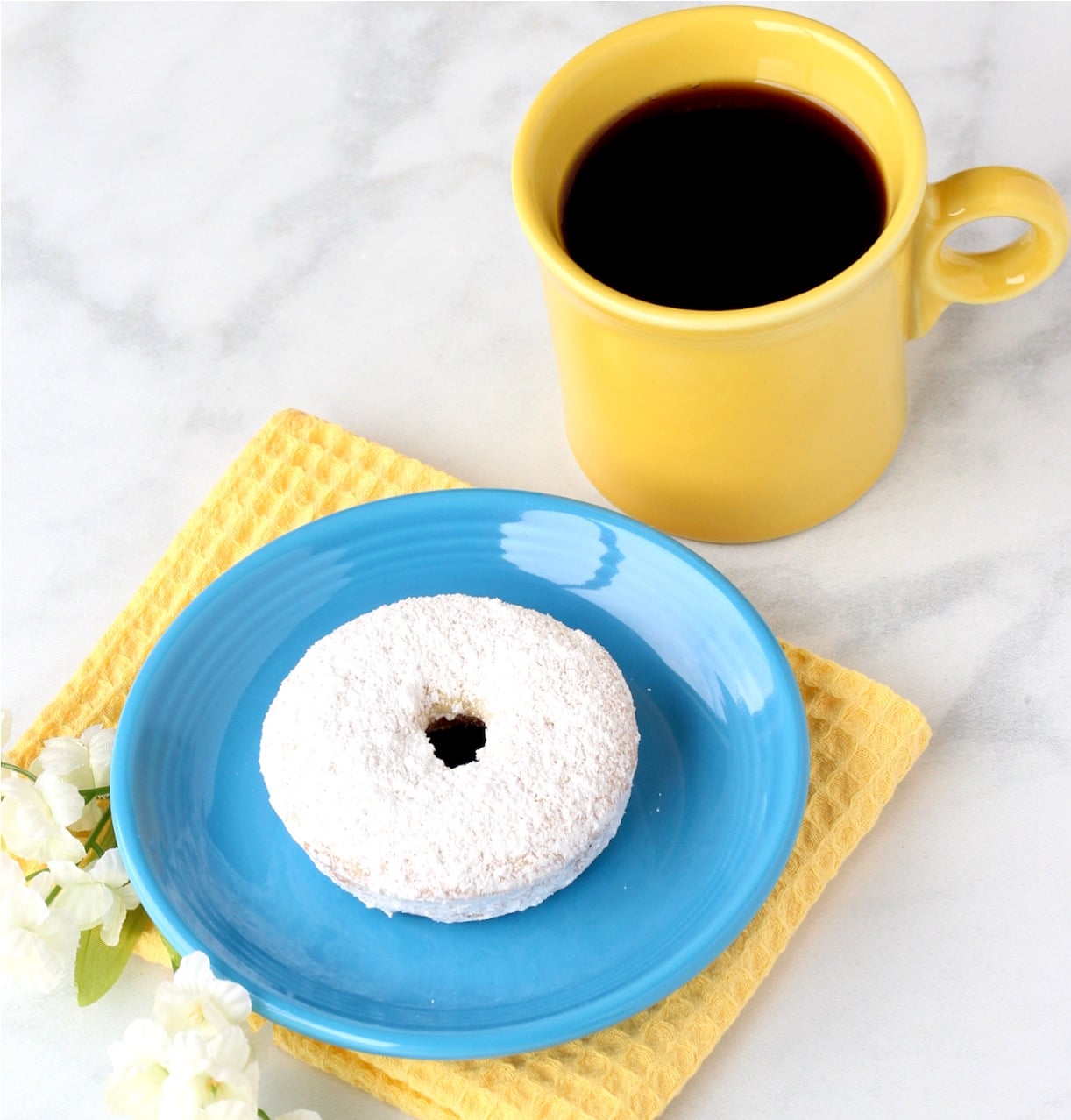 Baked, not fried… these Powdered Sugar Donuts made with a cake mix shortcut are the breakfast treat you’ll want on repeat! With just 5 ingredients and 15 minutes of prep, they’re also crazy easy to make!