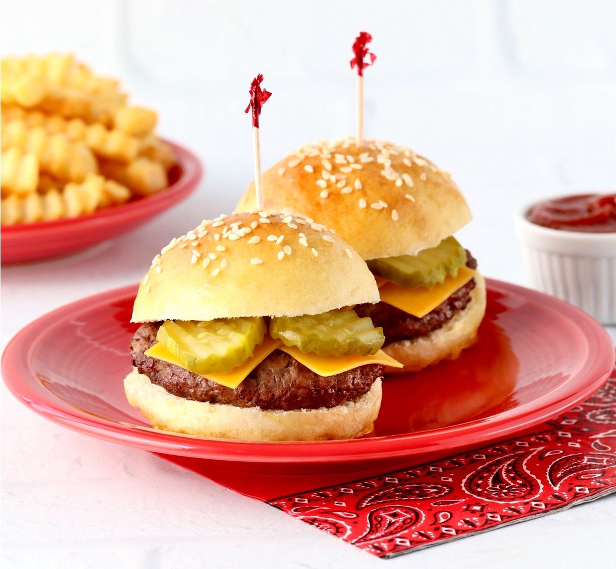 One of my favorite ways to use these fresh baked buns for sliders, is for cheeseburger sliders!